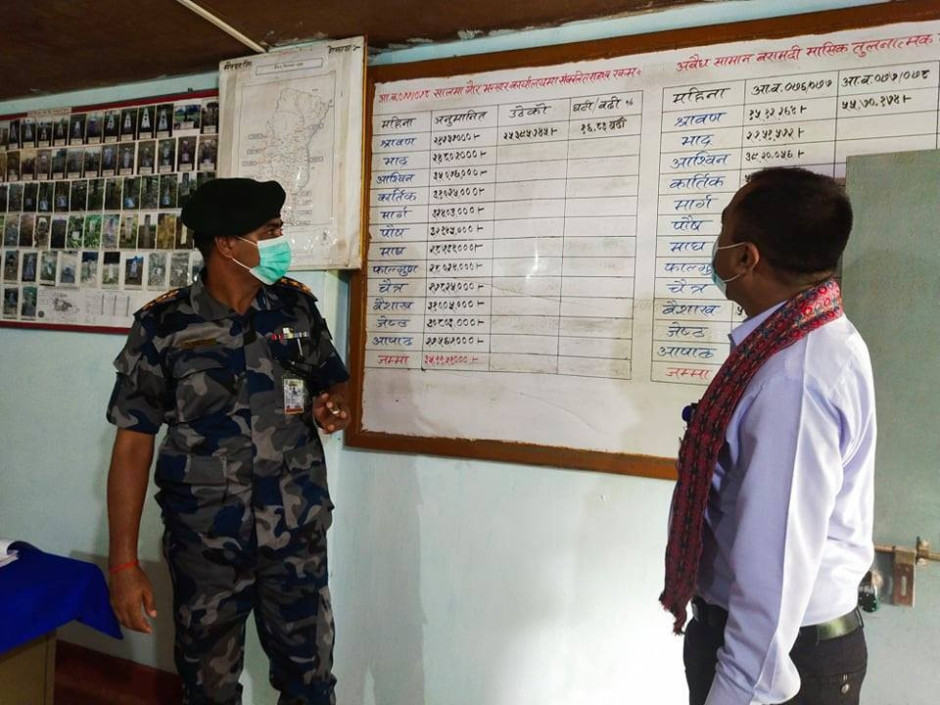 प्रमुख जिल्ला अधिकारी श्री इन्द्रदेव यादवद्वारा सशस्त्र प्रहरी वल नेपाल नं. ११ गण हे.क्वा., राैतहटको निरीक्षण, अवलोकन गरियाे ।