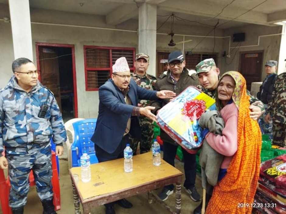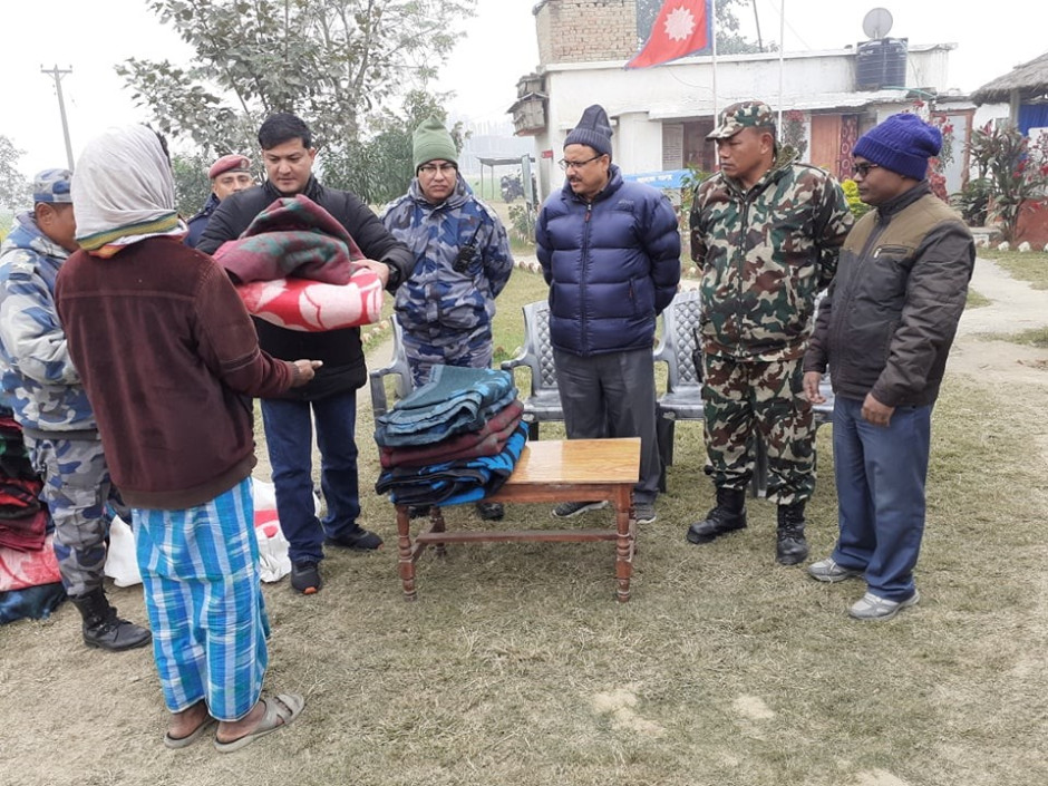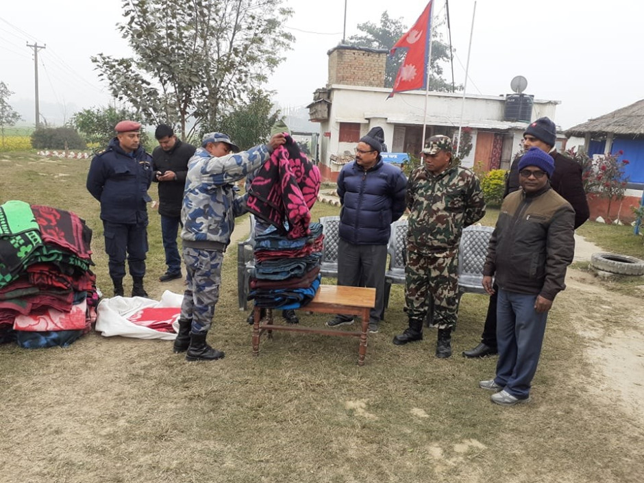 शितलहर तथा चिसोबाट बच्नको लागि यस जिल्लाको विभिन्न गा.पा./न.पा.मा कम्बल वितरण गरिदै