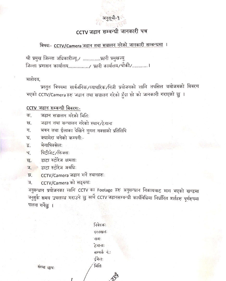 CCTV/Camera जडान सम्बन्धी अनुसूची -१