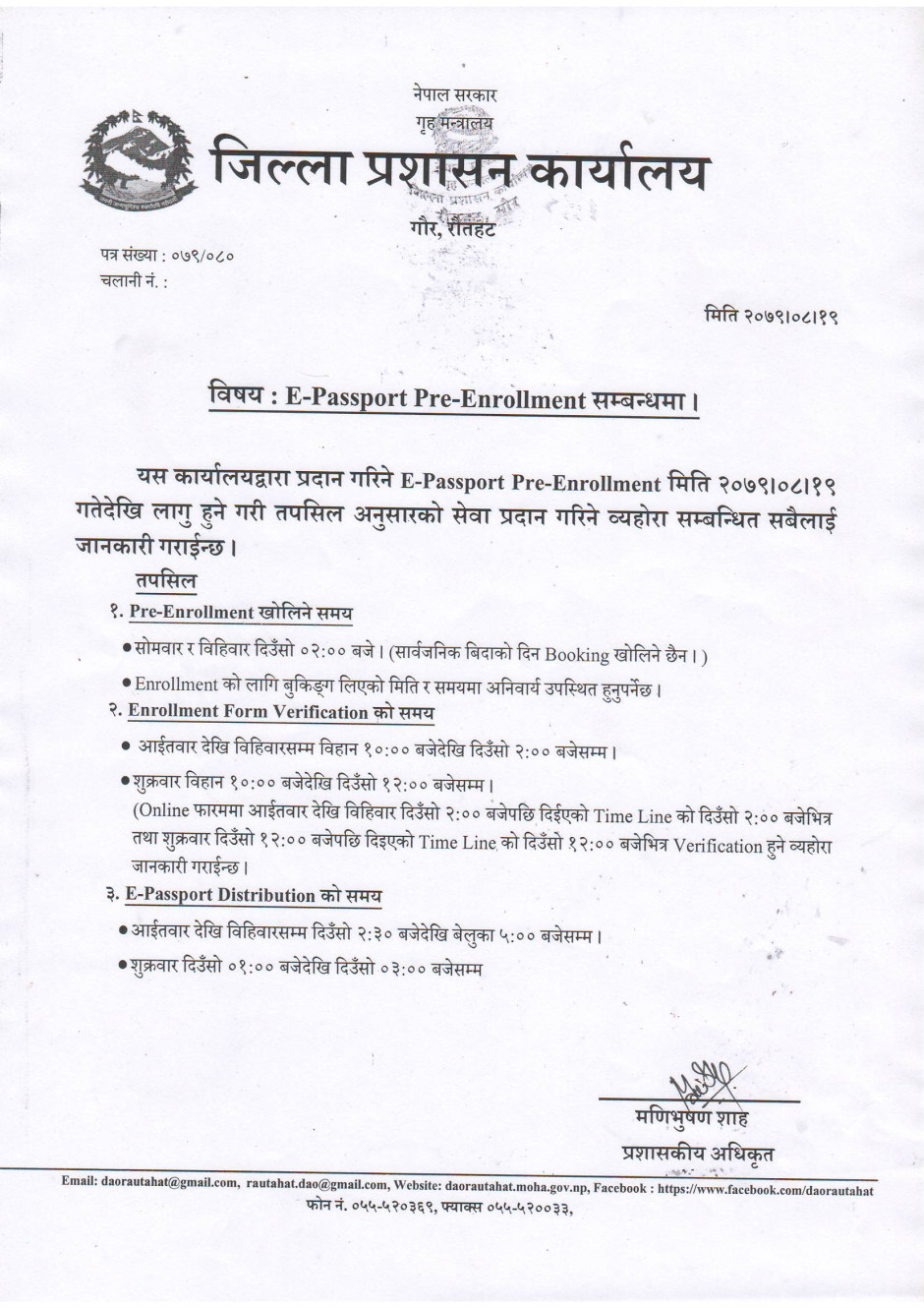 जिल्ला प्रशासन कार्यालय रौतहटबाट जारी सूचना