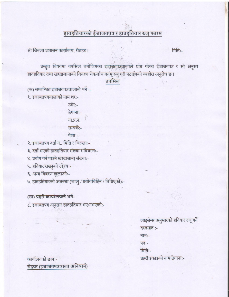 हातहतियारको प्राविधिक चेकजाँज गराउने सम्बन्धी सूचना