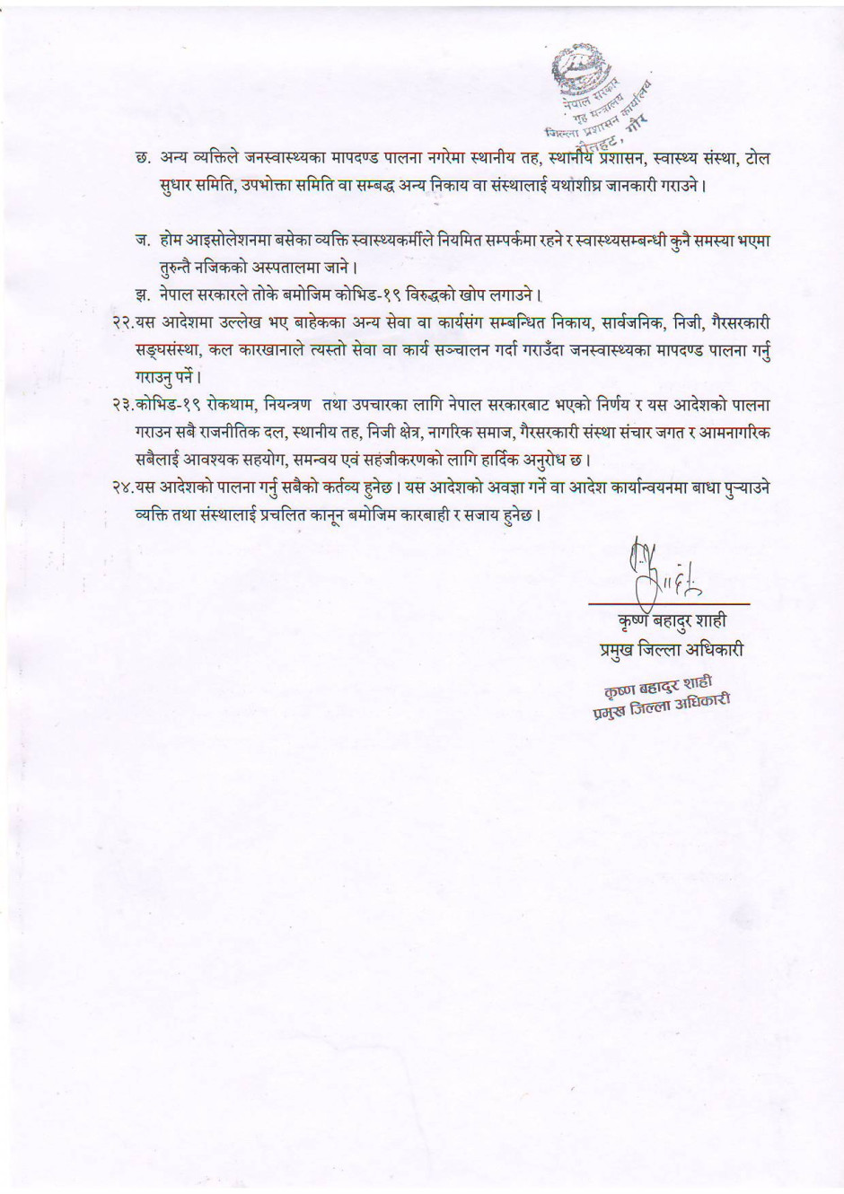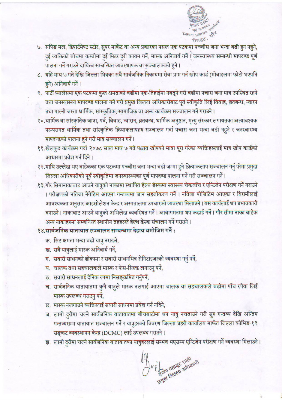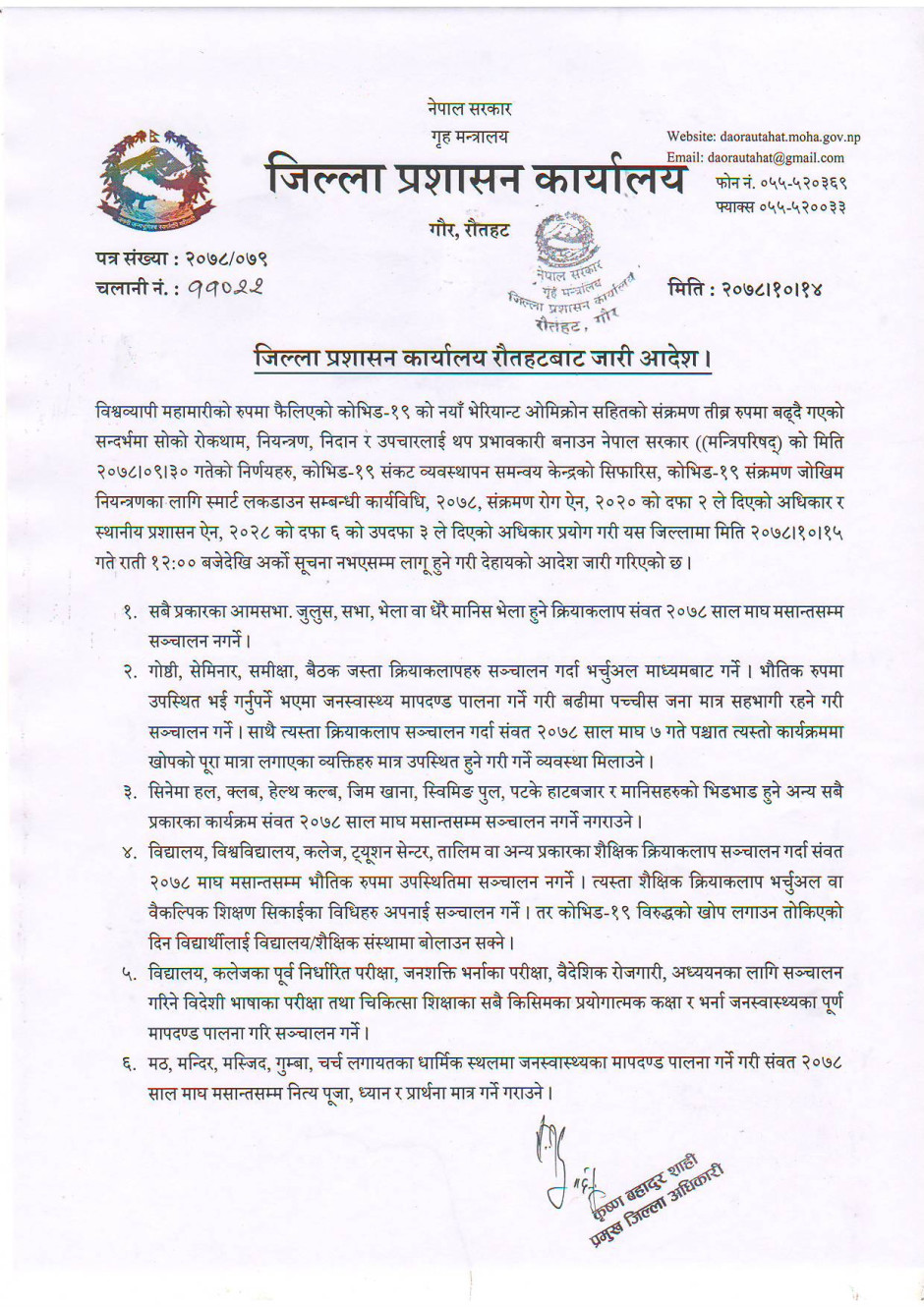 जिल्ला प्रशासन कार्यालय रौतहटबाट जारी आदेश