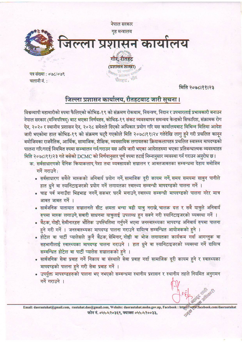 जिल्ला प्रशासन कार्यालय, रौतहटबाट जारी सूचना ।
