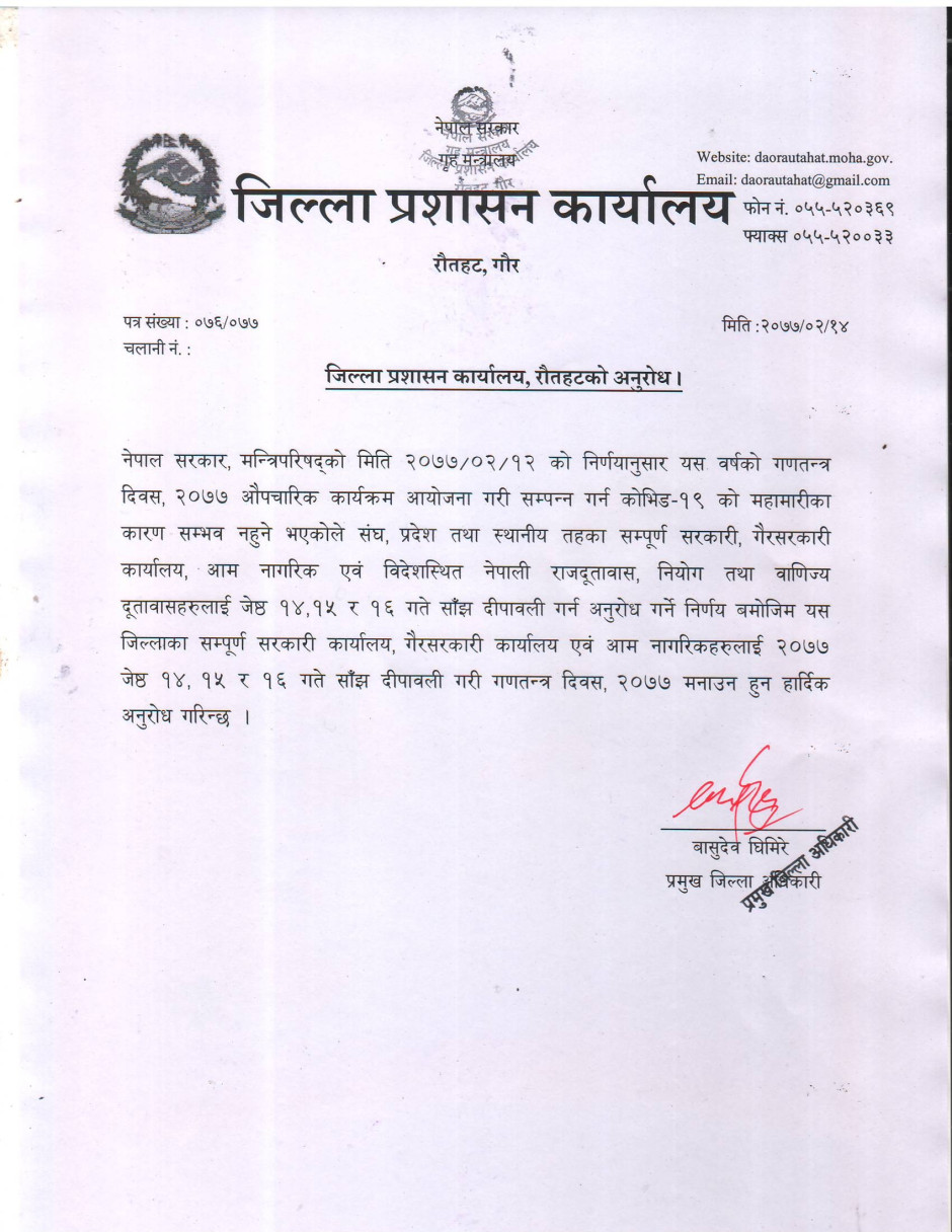 जिल्ला प्रशासन कार्यालय रौतहटको अनुरोध