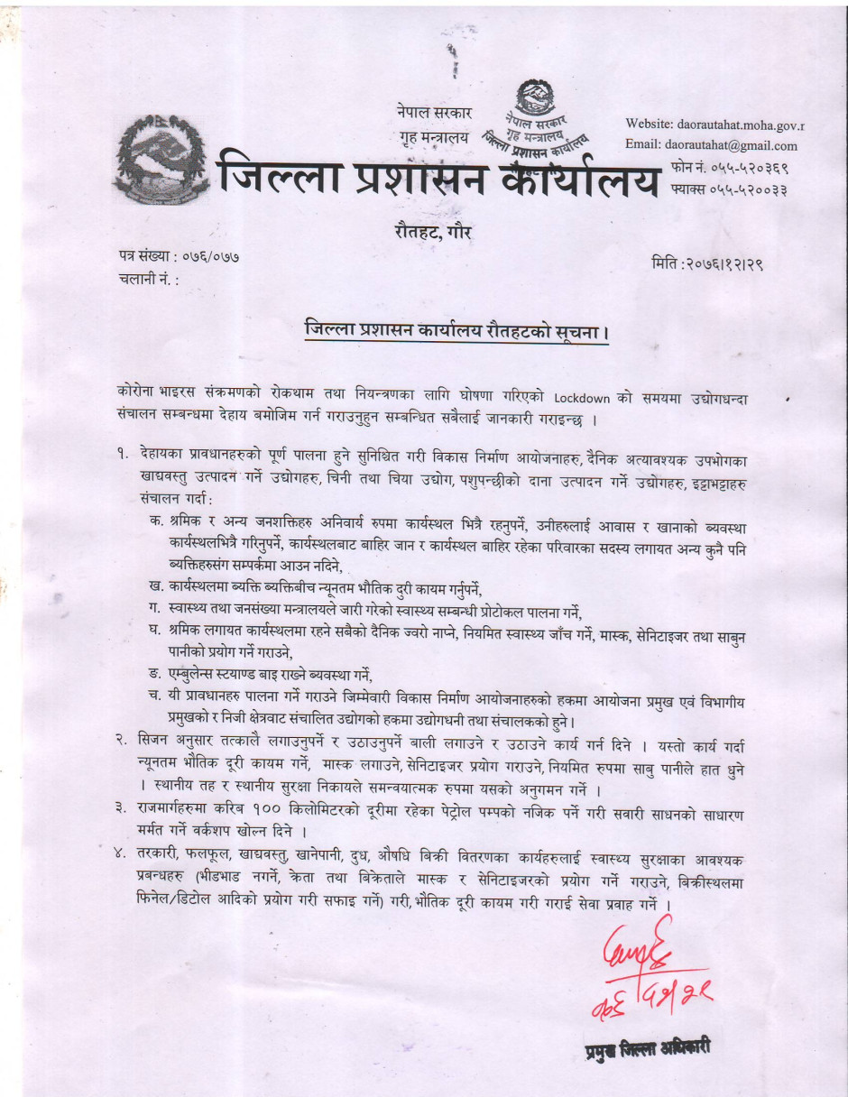 जिल्ला प्रशासन कार्यालय, रौतहटको सूचना