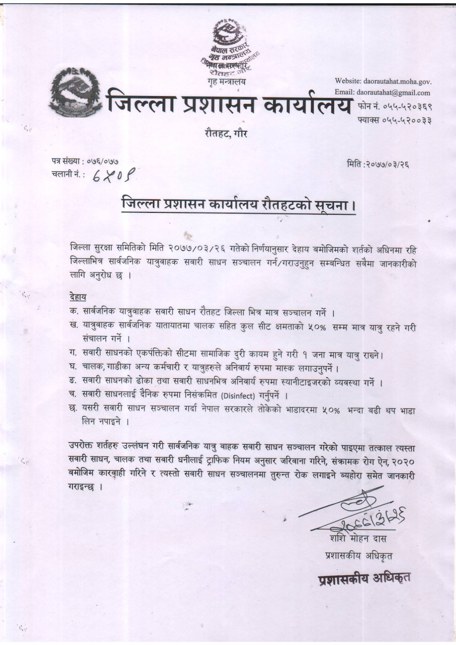 जिल्ला प्रशासन कार्यालय रौतहटबाट जारी सूचना