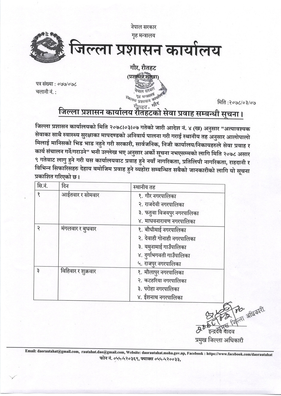 जिल्ला प्रशासन कार्यालय रौतहटको सेवा प्रवाह सम्बन्धी सूचना ।