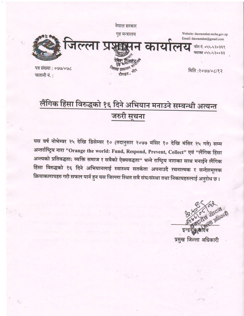 लैंगिक हिंसा विरुद्धको १६ दिने अभियान मनाउने सम्बन्धी अत्यन्त जरुरी सूचना