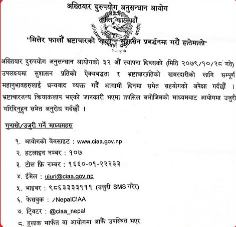"मिलेर फालौं भ्रष्टाचारको जालो : सुशासन प्रबर्द्धनमा गरौं हातेमालो"