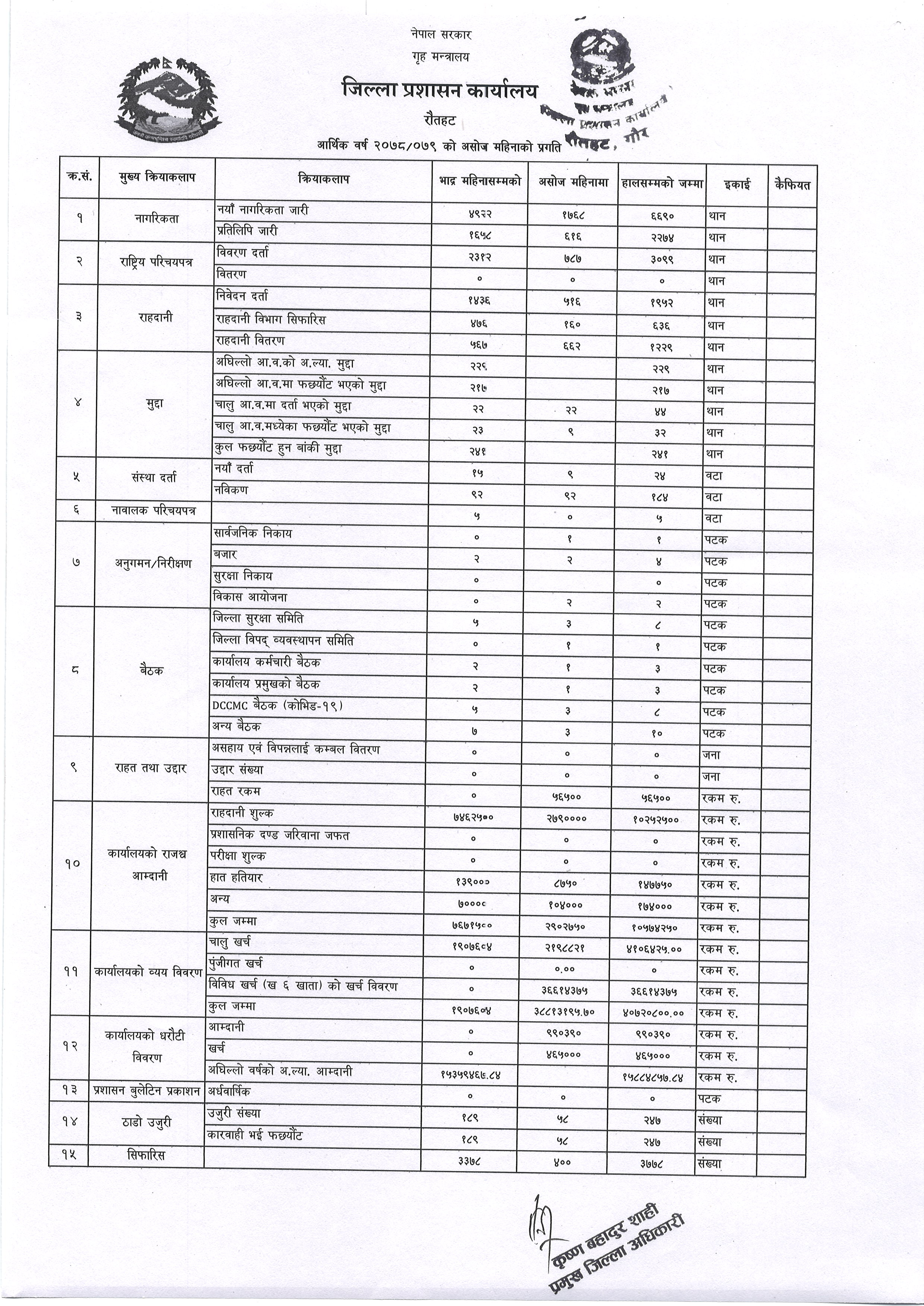 २०७७ श्रावण देखि असोज मसान्तसम्मको प्रगति