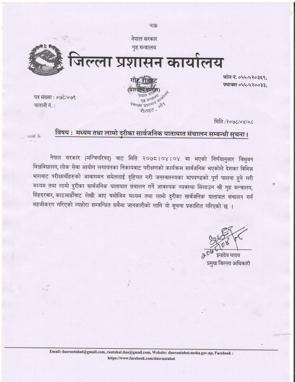 जिल्ला प्रशासन कार्यालय रौतहटबाट जारी सूचना