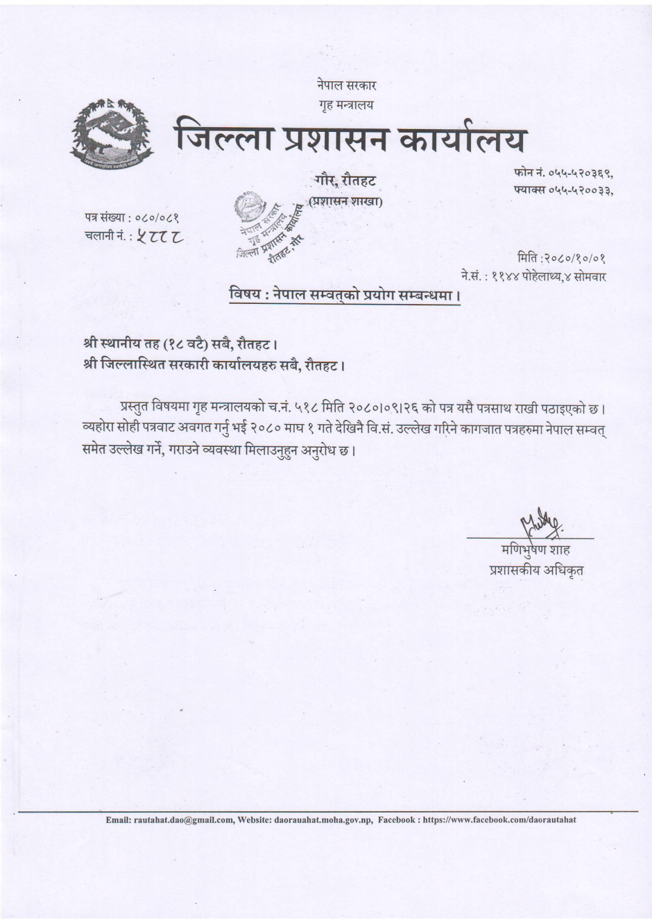 जिल्ला प्रशासन कार्यालय रौतहटबाट जारी सूचना