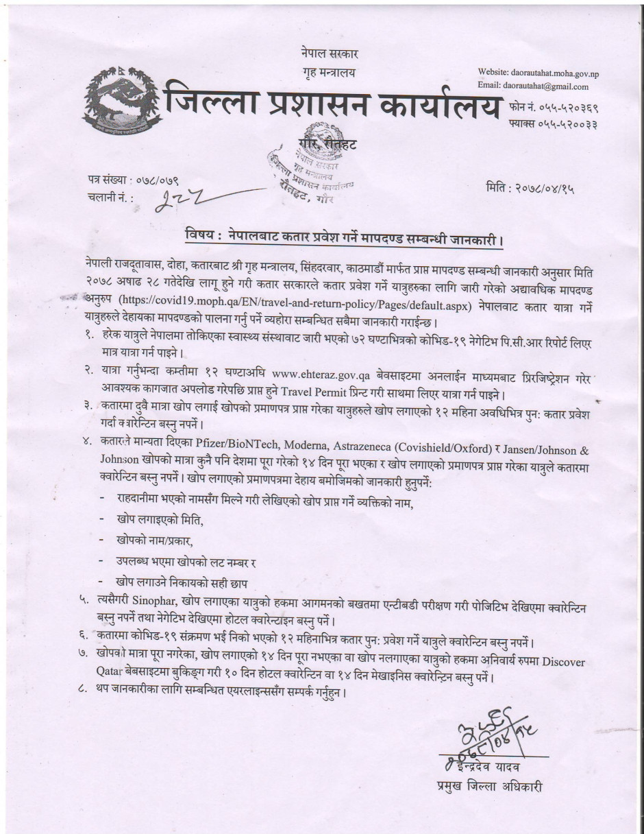 जिल्ला प्रशासन कार्यालय रौतहटबाट जारी सूचना