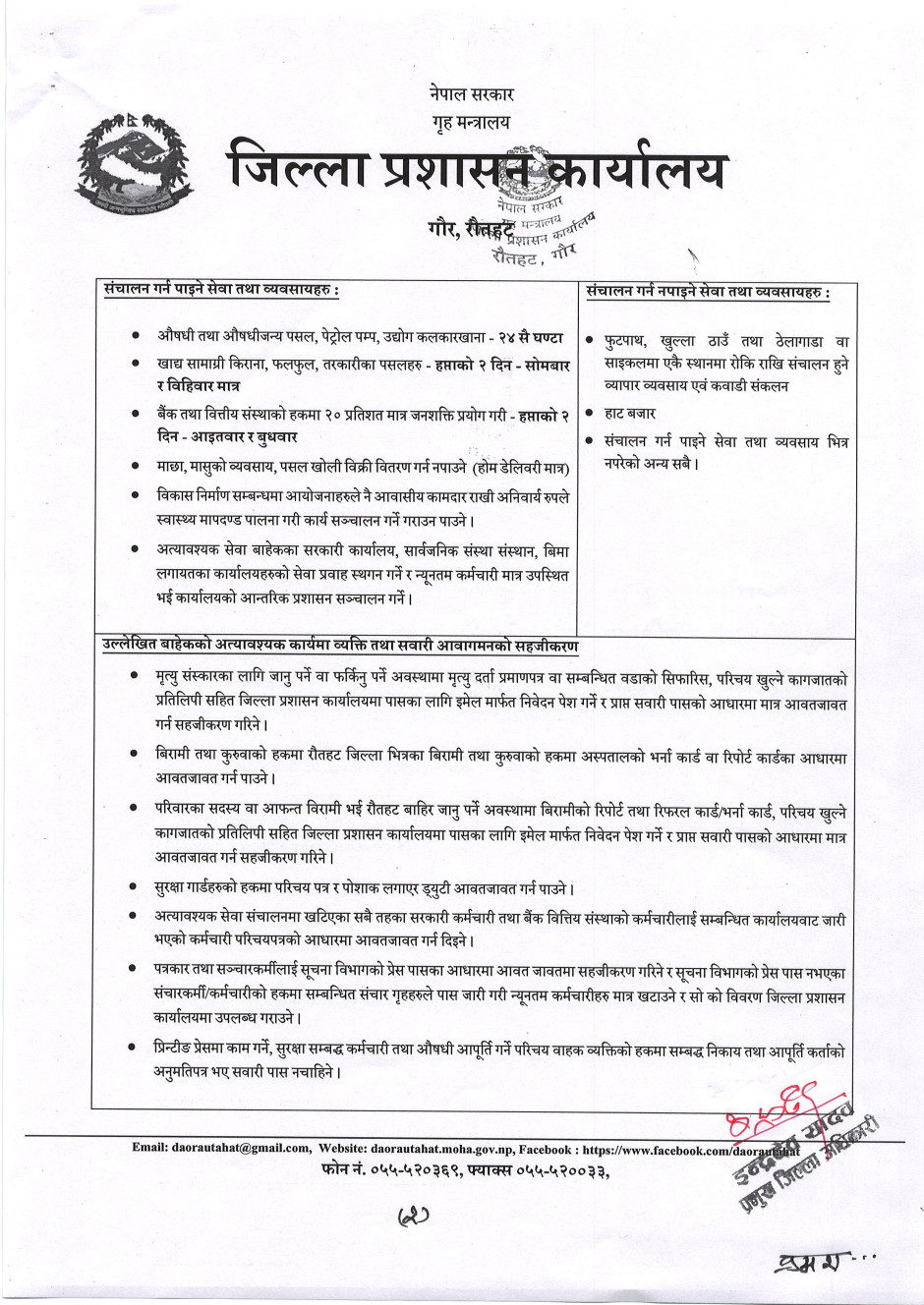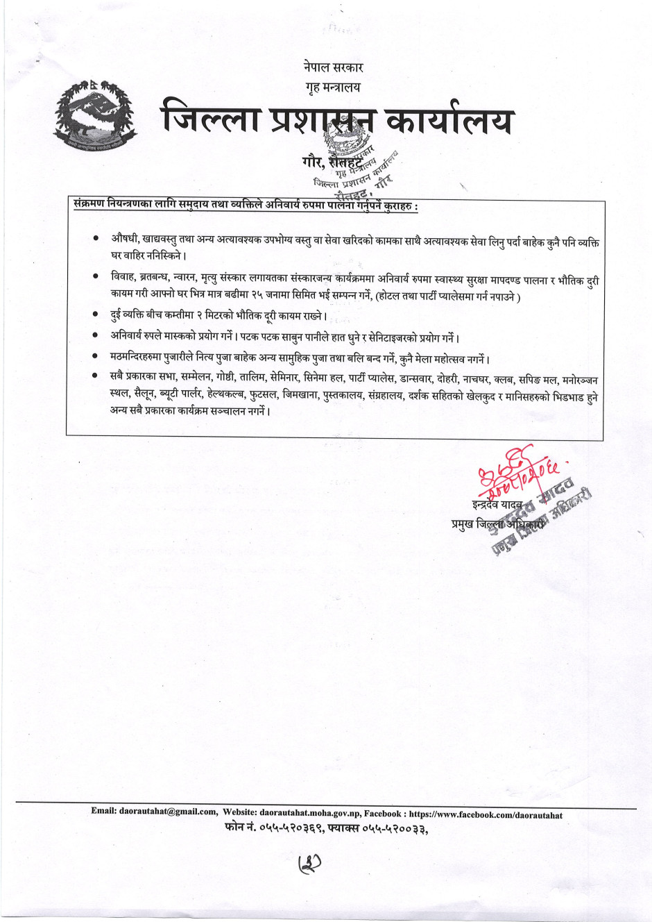 जिल्ला प्रशासन कार्यालय रौतहटबाट जारी सूचना