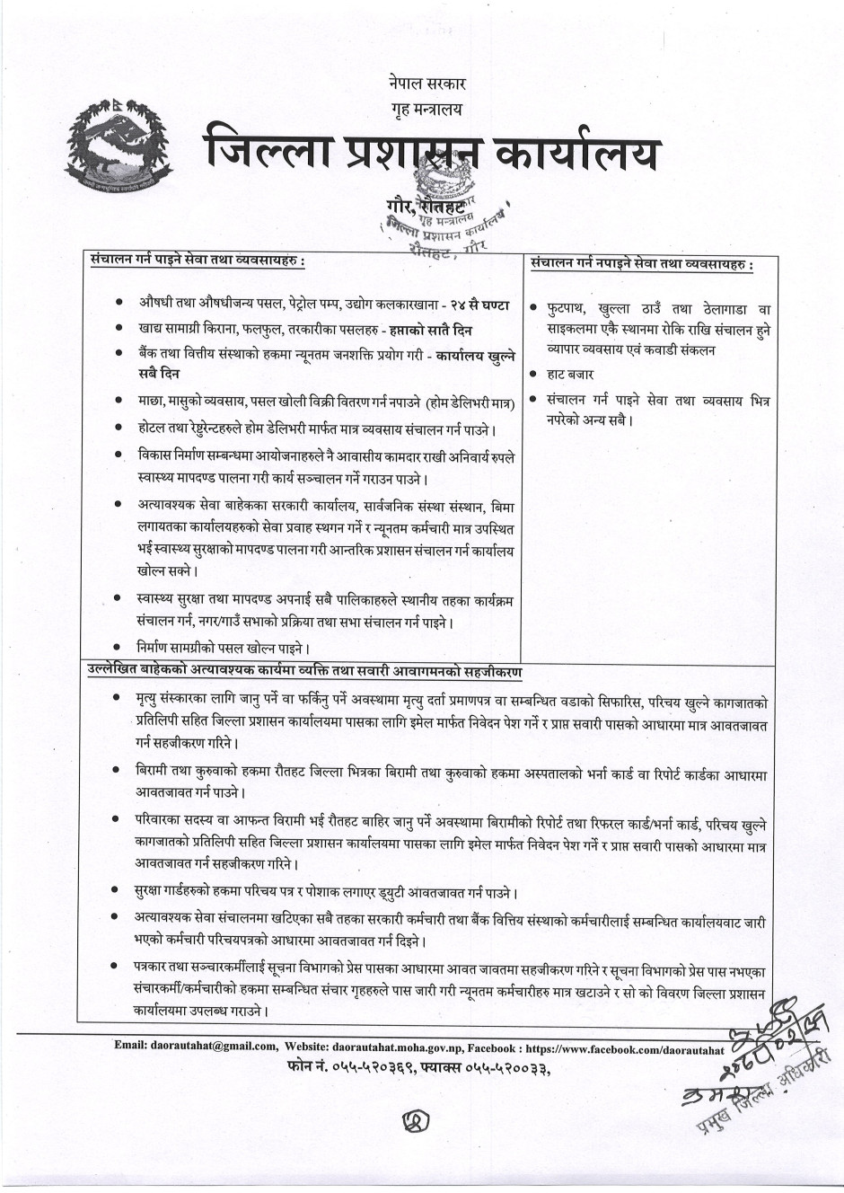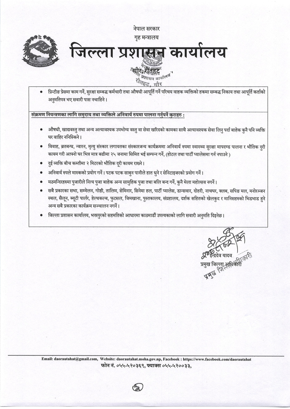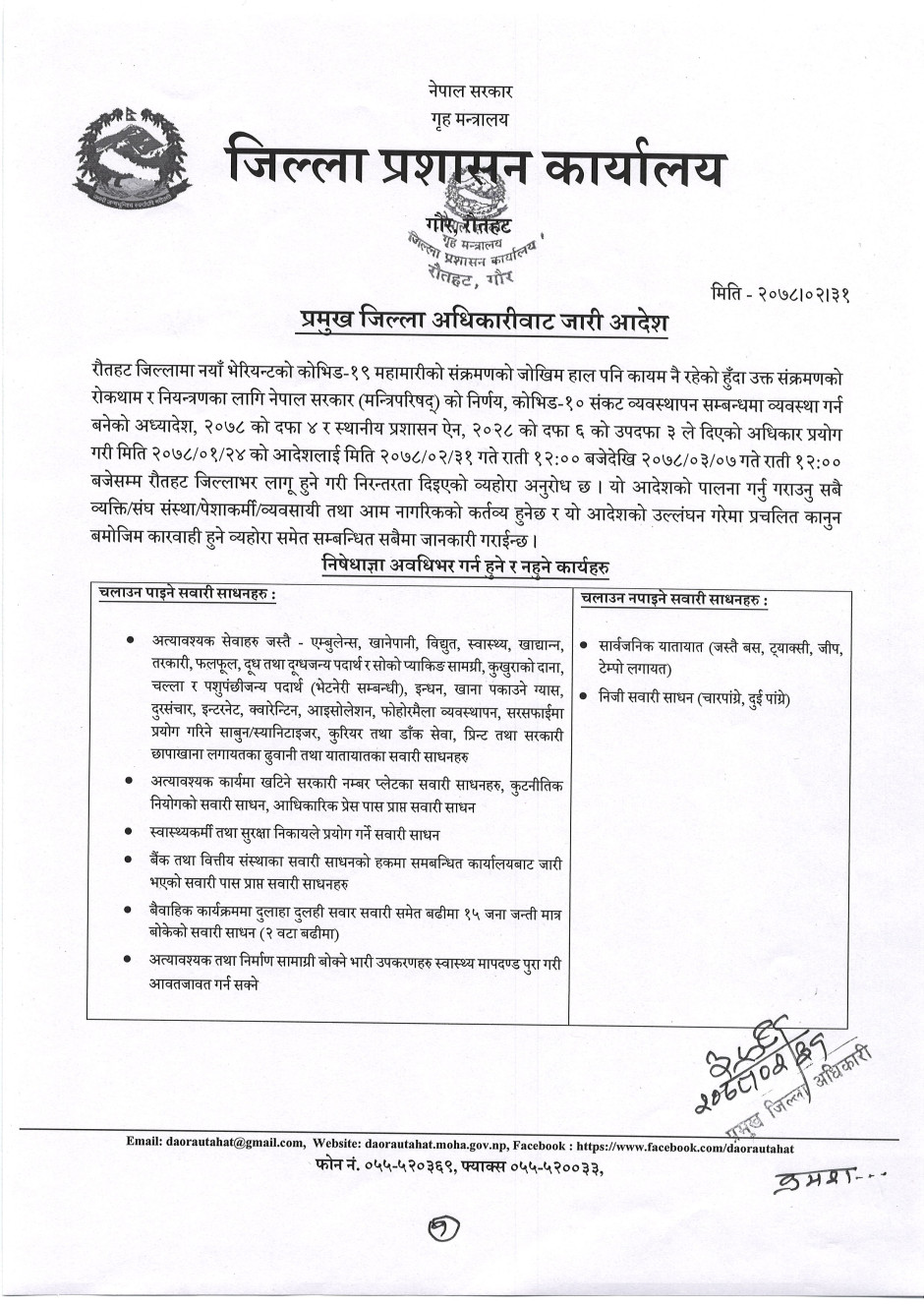 निषेधाज्ञा निरन्तरता सम्बन्धी प्र.जि.अ.बाट जारी आदेश, रौतहट