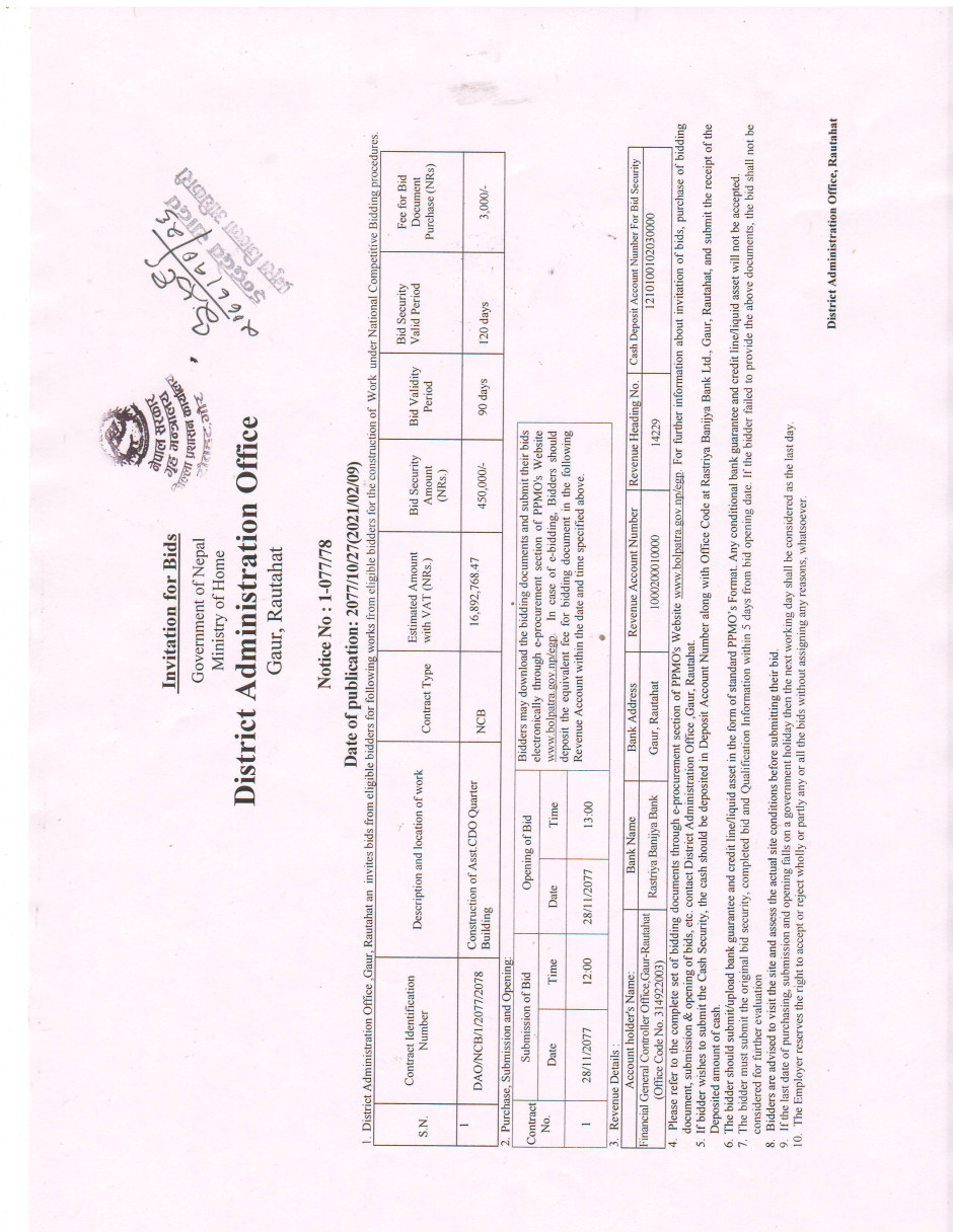 प्र.जि.अ. आवास निर्माण कार्य सम्बन्धि बोलपत्र आह्वान गरिएको सूचना