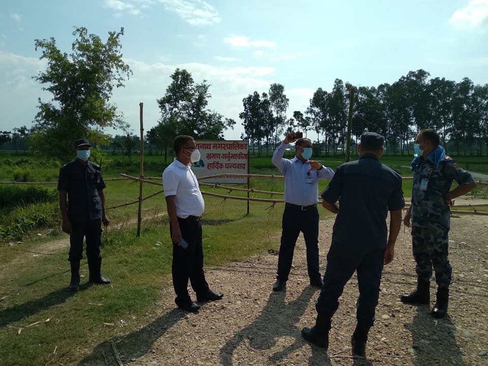 प्रमुख जिल्ला अधिकारी लगायतका जिल्ला स्थित सुरक्षा निकायका प्रमुखहरु सहितको टोलीद्वारा मिति २०७७/०५/०९ गते सीमावर्ती क्षेत्र अवलोकन, निरीक्षण भयो ।