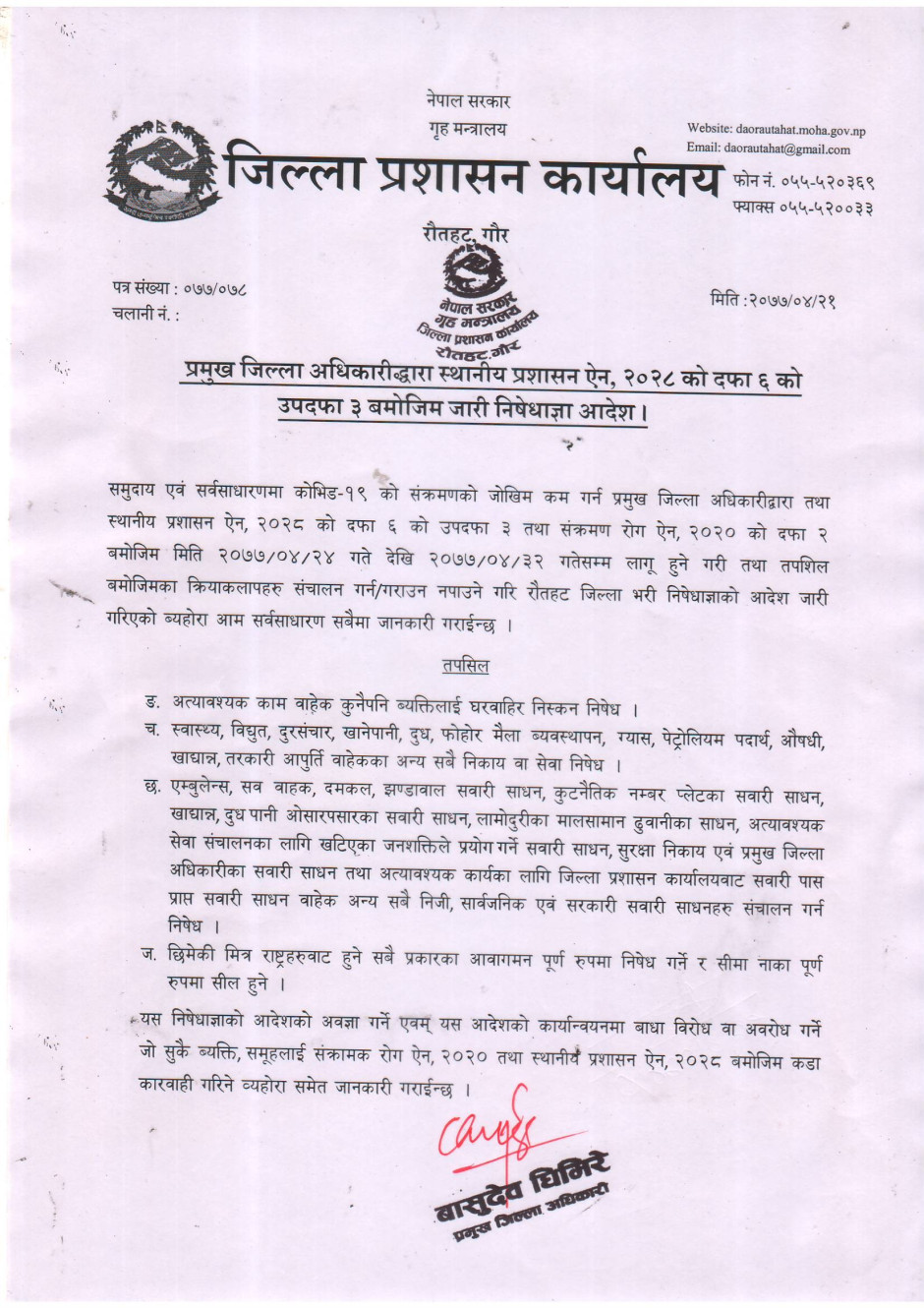 जिल्ला प्रशासन कार्यालय रौतहटबाट जारी सूचना