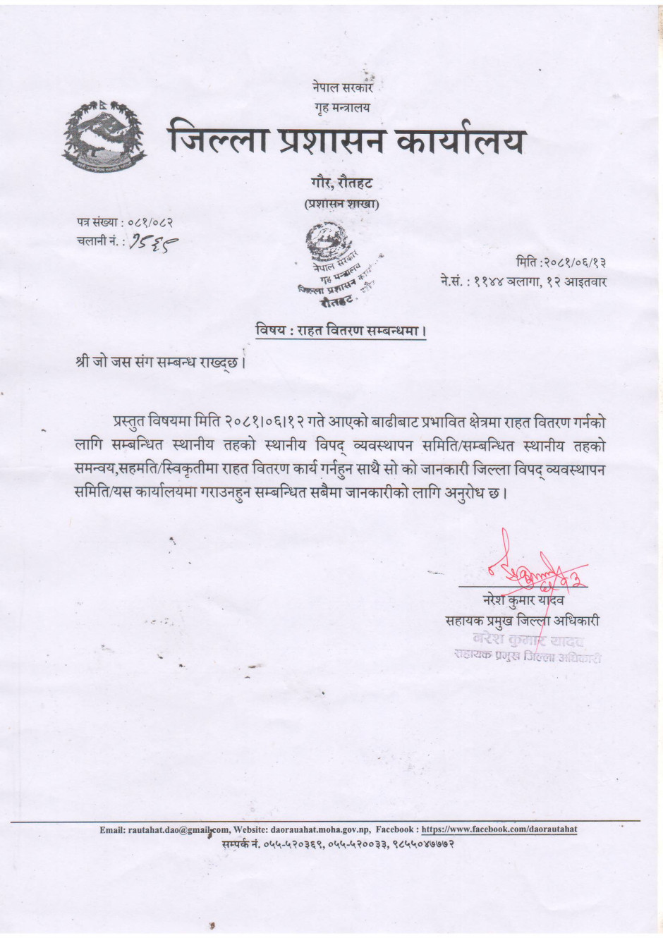 जिल्ला प्रशासन कार्यालय रौतहटबाट जारी सूचना