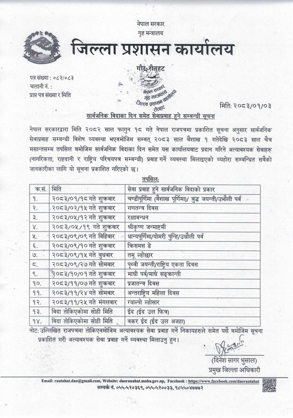 जिल्ला प्रशासन कार्यालय रौतहटबाट जारी सूचना