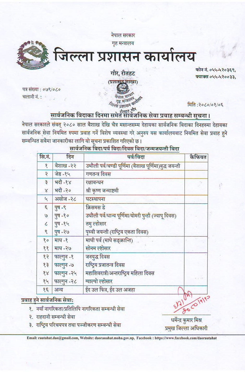 सार्वजनिक विदाका दिनमा समेत सार्वजनिक सेवा प्रवाह सम्बन्धी सूचना ।