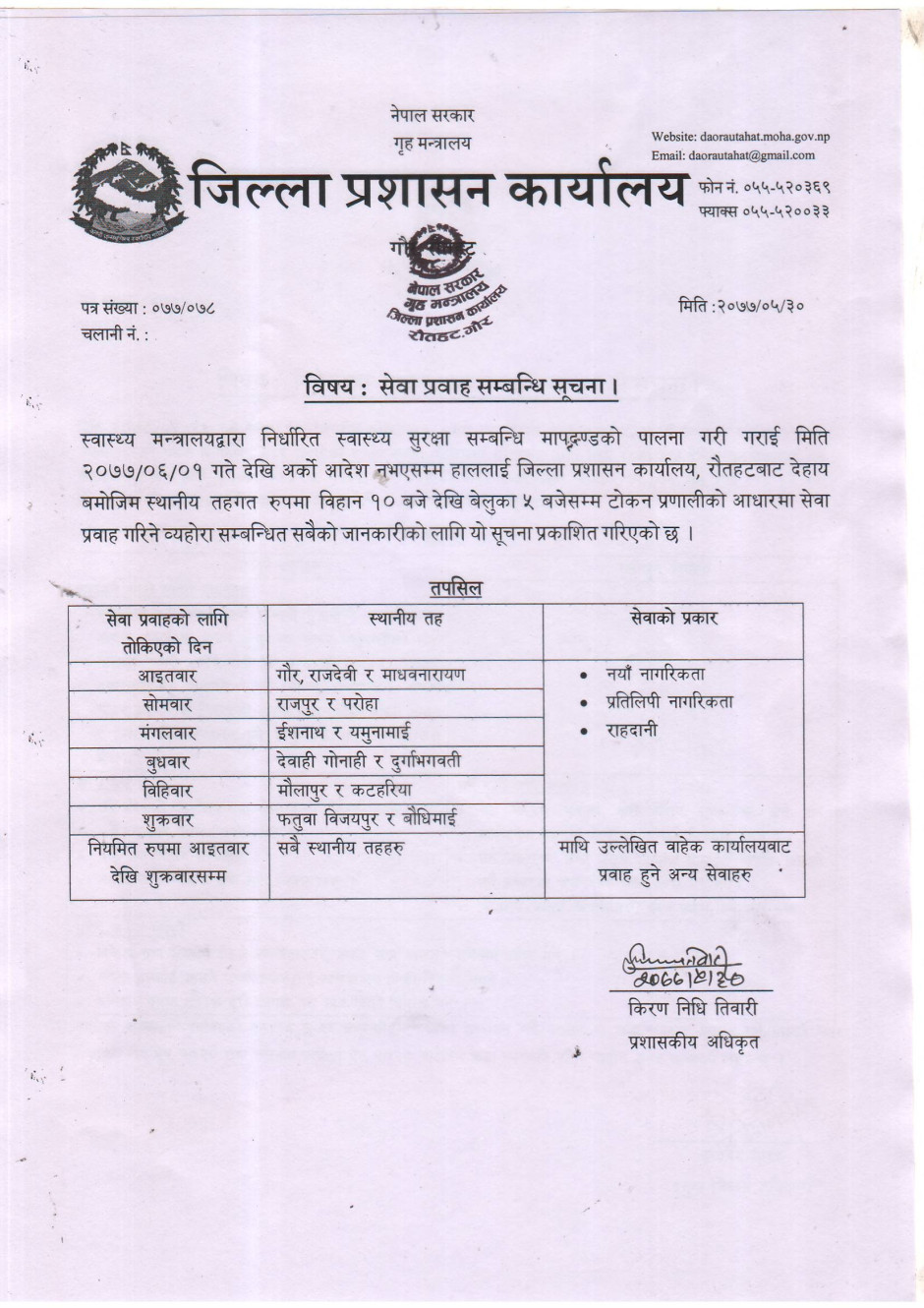 जिल्ला प्रशासन कार्यालय रौतहटबाट जारी सूचना