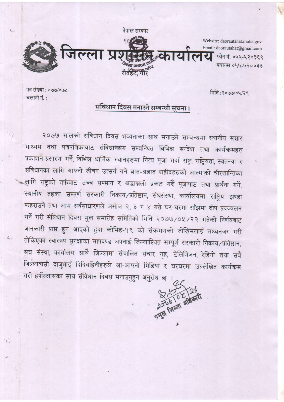 संविधान दिवस मनाउने सम्बन्धी सूचना