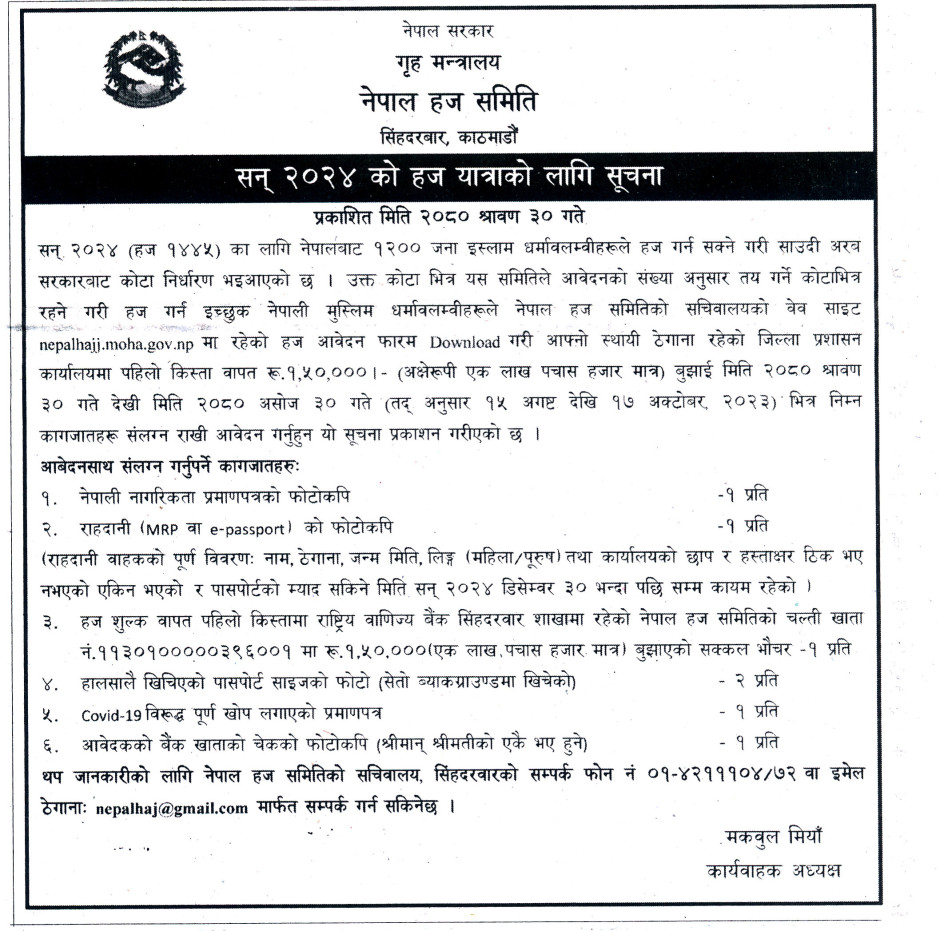 हजयात्रीहरुको उडान तालिका एवम् नामावलीको सूचना