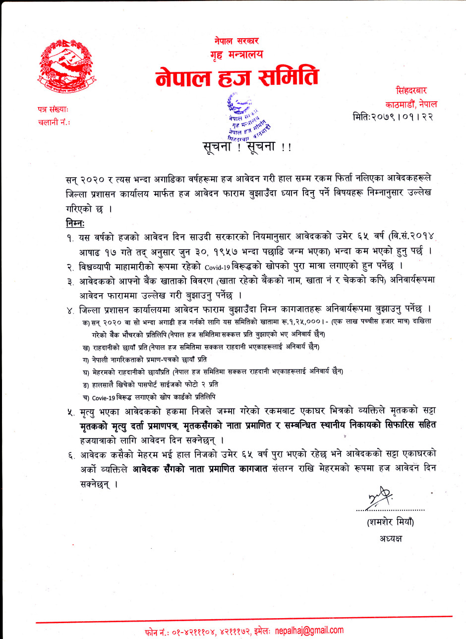 सन् २०२० र सो भन्दा अगाडिका हज आवेदकको लागि सूचना