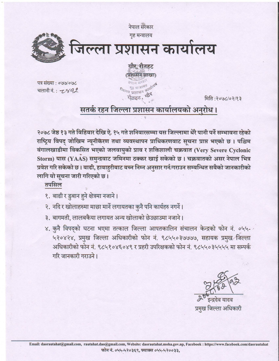सतर्क रहन जिल्ला प्रशासन कार्यालयको अनुरोध ।