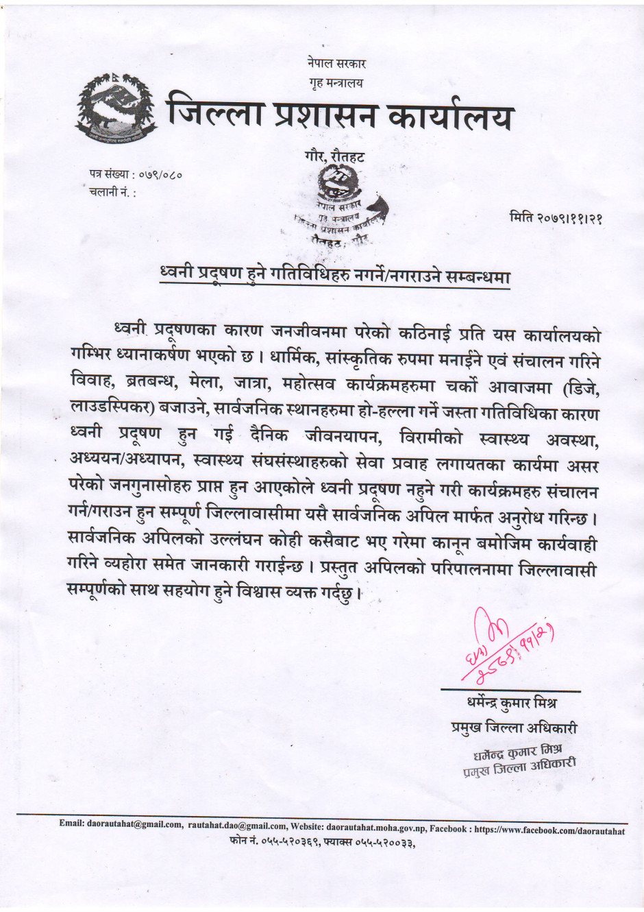 जिल्ला प्रशासन कार्यालय रौतहटबाट जारी सूचना