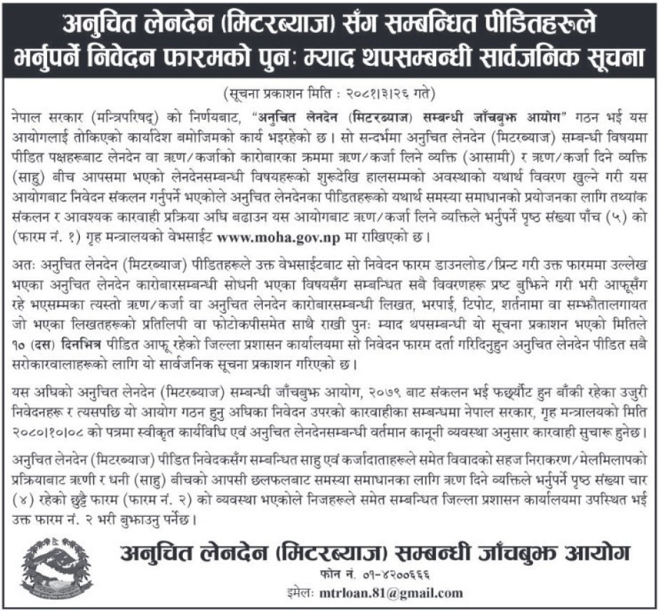 उजुरी संकलनको पुन: म्याद थप सम्बन्धी सूचना ।